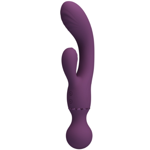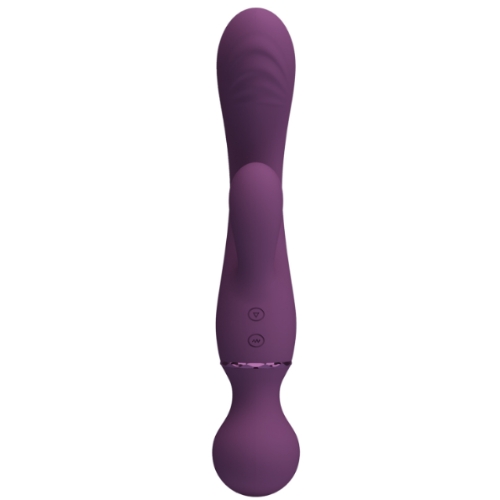 * Hai đầu rung phụ: Nhỏ gọn hơn, được đặt ở vị trí chiến lược để kích thích âm vật, môi âm hộ và các khu vực xung quanh. Sự kết hợp của ba đầu rung này tạo ra một trải nghiệm kích thích đa chiều, mạnh mẽ và toàn diện, giúp người dùng dễ dàng đạt cực khoái.