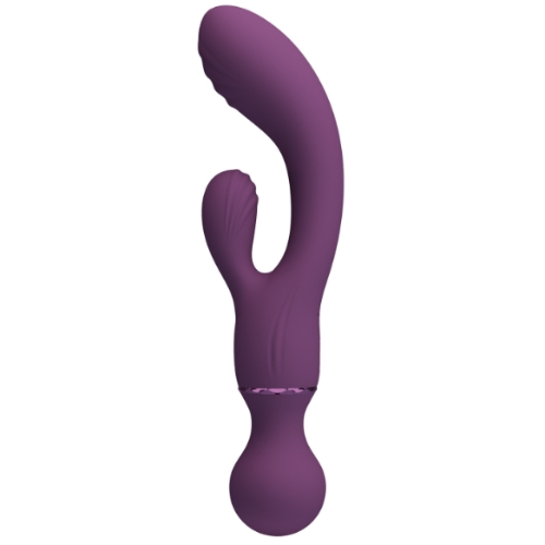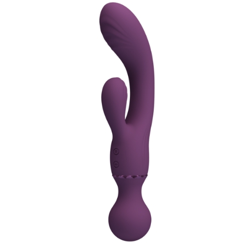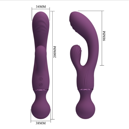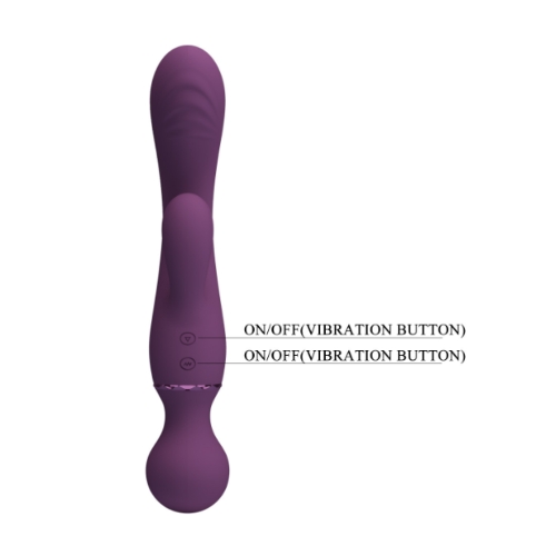 * Hai đầu rung phụ: Nhỏ gọn hơn, được đặt ở vị trí chiến lược để kích thích âm vật, môi âm hộ và các khu vực xung quanh. Sự kết hợp của ba đầu rung này tạo ra một trải nghiệm kích thích đa chiều, mạnh mẽ và toàn diện, giúp người dùng dễ dàng đạt cực khoái.